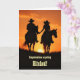 Two riders off into the sunset. A great country western way to say Congratulations on getting married, or your wedding, or as I have it, getting hitched! The text is changeable.