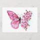 Flower arrangement of pink butterfly with rose Japanese cherry blossoms on white background.