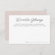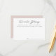 Petite carte élégante permettant aux clients de la douche nuptiale de partager leurs idées de destination de vacances préférées pour le couple. "Romantic Getaways" apparaît dans un texte manuscrit en noir doux et moderne, avec votre texte personnalisé en italique classique.