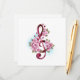 Pink treble clef with delicate, detailed pink Japanese cherry blossoms against white background painted over with light blue paint Blooming pink sakura.