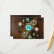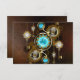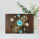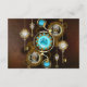 Turquoise lenses with antique watch with brass gears and golden keys on rusty, brown background. Steampunk style.