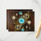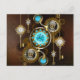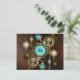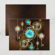 Turquoise lenses with antique watch with brass gears and golden keys on rusty, brown background. Steampunk style.