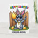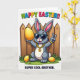 This card shows a cool grey bunny with pink-lined ears standing in front of a rustic brown fence in a simple grassy field 🐰. Dark sunglasses cover its eyes, but the wide grin and relaxed stance suggest it’s sharing the moment with a close friend. A gold-toned chain with a round medallion and a matching cuff bracelet add a flirty, showy touch, like it dressed up to impress. In one paw it holds a shiny golden egg, and the other paw flashes a two-finger peace sign 🐇. Two more golden eggs rest in the green grass near its feet, catching highlights as if the sun just hit them. Across the top, big multicolored letters spell out a seasonal greeting, and a shorter line of text sits near the bottom in a darker contrasting color. The background stays minimal with green ground and a few simple shapes, keeping the focus on the bunny, the fence slats, and the glossy gold eggs.