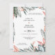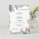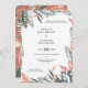 Faire-part de mariage de feuillage corail rose et feuille tropicale. Une partie d'une magnifique suite de mariage élégante. Collection tropicale moderne verte, bleue et corail.