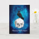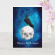 La conception comporte un corbeau sur le dessus d'un crâne effrayant blanc et un beau ciel nocturne étoilé bleu clair. À l'intérieur de la carte - Chauve-souris effrayante volant dans un beau ciel nocturne étoilé bleu. Personnalisez avec votre propre message ou supprimez le texte si vous souhaitez le laisser vide (pour un message manuscrit)