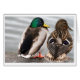 Une photo de deux canards colverts assis sur le quai, tous deux regardant attentivement quelque chose sur leur droite. Le canard mâle sur la gauche montre sa belle tête colorée mais la petite femelle sur la droite gagne dans les enjeux de beauté avec son merveilleux plumage, avec une vue fantastique du détail sur son aile et ses plumes de queue. Les oiseaux ont été photographiés à la réserve naturelle de Loch Hogganfield à Glasgow, en Écosse.