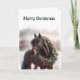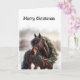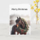 Beau Cheval Brown dans un pâturage avec une couronne de Noël autour du cou. Parfait pour tous ceux qui aiment les chevaux