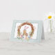 Sur le devant de cette jolie carte de Pâques se trouve un lapin brun capricieux à l'intérieur d'une couronne de cadre en saule. Au bas de la couronne se trouvent des œufs de Pâques de couleur pastel. Un cadre de motif entoure l'image. À l'intérieur, il y a trois champs de texte personnalisables en rose et vert sarcelle pastel. Faites-lui dire ce que vous voulez !