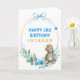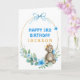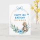 Ours mignon avec couronne dorée et arc bleu sur un cadre doré brillant et fleurs d'aquarelle bleue