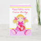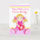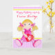 Whimsical rag doll painted birthday greetings card, ideal for a little girl's birthday. Cute rose, rouge, purple, jaune et blanc colours. Personalize with your own relationship name and age. Original watercolor painting and design by Sarah Trett for www.mylittleeden.com on zazzle.