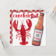 Customize the front and the reverse of this Crawfish Boil party invitation featuring a large red crawfish and bottle of beer.