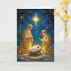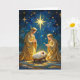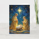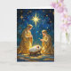 Célébrez le véritable sens de Noël avec cette superbe carte représentant une scène de la Nativité radieuse. La Sainte Famille est magnifiquement illuminée sous l'étoile de Bethléem, entourée de détails dorés scintillants et d'un ciel nocturne paisible. Parfaite pour envoyer des vœux de fêtes sincères, cette carte avec intérieur vierge vous permet d'ajouter votre propre message personnel pour vos amis et vos proches. Un design intemporel qui capture la magie et la joie de la saison.