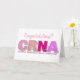 Carte de félicitations pour infirmière anesthésiste (CRNA) "Félicitations". Les couleurs des lettres sont des nuances de rose avec une bande de rythme cardiaque au milieu des lettres.