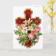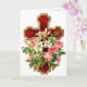 Croix vintage rouge et or avec une profusion de jolies fleurs a été soigneusement retouché pour mettre en évidence les détails merveilleux. Il y a des Lillies de Pâques blanches et des Roses roses luxuriantes. Une belle carte chrétienne toute l'année pour vous de personnaliser.