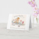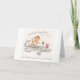 Une image de carte de voeux de cru comporte un bébé s'asseyant sur le plancher jouant avec une rangée de cadeaux de bébé tels que des bouteilles, des butins, des jouets et l'habillement de bébé. Il se brosse les cheveux avec une nouvelle brosse de cheveux de bébé. L'avant de la carte indique que "faire bon accueil à votre nouveau bébé" et au vers à l'intérieur de la carte est "oh, oh, oh ! Il juste n'obtient pas d'améliorer que ceci ! Appréciez !"