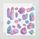 Cette carte plate et carré présente mon illustration originale de cristaux et de pierres précieuses, dans de beaux violets, des roses et des lacets. Cette illustration a été réalisée à l'aide de crayons colorés.