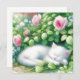 Carte Cube Kitten Blanc Nappant Sous Rosebush