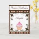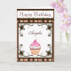 Sucré cupcake d'anniversaire personnalisable sur un arrière - plan rayé mignon