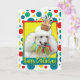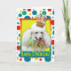 Célébrez un anniversaire avec cette carte de voeux fantaisiste pour chien de caniche blanc. Avec un cupcake équilibré sur sa tête, ce design ne manquera pas d'apporter un sourire et des rires ! BTW, Cette conception a plusieurs versions, avec différentes couleurs arrière - plans. Il y a aussi une invitation à une version Party.