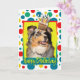 Célébrez un anniversaire avec cette carte de voeux fantaisiste pour chien berger australien. Avec un cupcake équilibré sur sa tête, ce design ne manquera pas d'apporter un sourire et des rires ! BTW, Cette conception a plusieurs versions, avec différentes couleurs arrière - plans. Il y a aussi une invitation à une version Party.