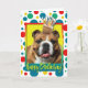 Célébrez un anniversaire avec cette carte de voeux Bulldog fantaisiste. Avec un cupcake équilibré sur sa tête, ce design ne manquera pas d'apporter un sourire et des rires ! BTW, Cette conception a plusieurs versions, avec différentes couleurs arrière - plans. Il y a aussi une invitation à une version Party.