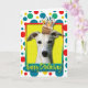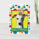 Célébrez un anniversaire avec cette carte de voeux fantaisiste pour chien Whippet. Avec un cupcake équilibré sur sa tête, ce design ne manquera pas d'apporter un sourire et des rires ! BTW, Cette conception a plusieurs versions, avec différentes couleurs arrière - plans. Il y a aussi une invitation à une version Party.