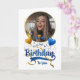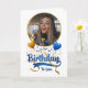 Style de conception = texte d'anniversaire bleu avec des ballons d'or et de bleu. Rendez l'anniversaire de votre être cher encore plus spécial avec cette carte de voeux personnalisée ! Téléchargez votre photo préférée du célébrant de l'anniversaire et customisez le texte pour créer une carte unique qu'ils chériront. Nos cartons de haute qualité et notre impression dynamique vous assurent que votre photo sera la meilleure. Que vous soyez proche ou lointain, ce geste sincère vous apportera un sourire au visage lors de leur journée spéciale. Commandez maintenant et donnez-leur une carte d'anniversaire qu'ils n'oublieront jamais !
