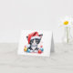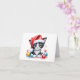 Carte Cute chat noir et blanc à Santa Hat Noël