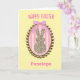 A cute Easter bunny card for her, which features a leopard print bunny inside a gold frame with Spring colors. You will be able to personalize the front with her name and the inside card message. This would make a sweet Easter card keepsake for girls.