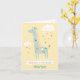 Cute Giraffe avec nuages et étoiles sur arrière - plan de point jaune pastel. Avec Bienvenue dans le texte du monde