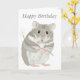 Cette carte de voeux comporte un mignon hamster gris et blanc dessiné à la main, tenant une fleur contre un arrière - plan blanc. Le texte de la première page peut être modifié comme suit : "Joyeux anniversaire". Le texte à l'intérieur est également entièrement modifiable afin que vous puissiez ajouter votre propre message si vous le souhaitez.
