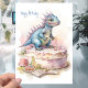 Carte Cute Little Dinosaur avec gâteau - Anniversaire de