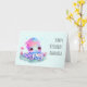 Carte d'anniversaire avec l'image d'une jolie pieuvre girly avec une fleur sur la tête. De grands yeux brillants et un visage amical.