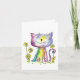 Carte Cute Whimsical Happy Chat avec Fleurs Jaunes