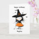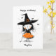 Whimsical Halloween artwork featuring a sweet little witch with a wide hat, orange skirt, and playful hand-drawn details. The black-and-orange palette and charming character design create a fun, festive look suitable for a variety of Halloween-themed products.