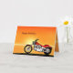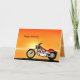Une moto semblable à une Harley debout au bord de la mer avec un glorieux coucher de soleil orange. Une grande carte pour tous ceux qui aiment le vélo et les motos.Voir toute la gamme de cartes pour les âges et les relations dans mon magasin. Toutes les oeuvres d'art copyright Norma Cornes