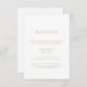 Cette carte élégante de typographie or mariage de réception de mariage est parfaite pour un mariage moderne. Le design simple présente une typographie classique minimaliste d'or et de blanc, dans un style boho rustique. Personnalisable dans n'importe quelle couleur. Gardez le design minimal et élégant, en l'état, ou personnalisez-le en ajoutant vos propres graphiques et artwork. Personnalisez cette carte détaillée de boîtier avec vos informations de réception et incluez également votre adresse de site mariage !