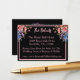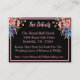 Beautiful Spring and Summer flowers designed enclosure wedding detail cards. Flowers are colors of blue, purple and pink. The bride and groom are standing in the moonlight holding hands.