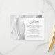 Le bord gauche de cette élégante carte de boîtier de détails mariages moderne dispose d'une bordure en aquarelle gris et blanc ornée d'une parties scintillant en faux argent. Le titre est en écriture manuscrite moderne, avec le texte personnalisable ci-dessous en caractères de cuivre gris fusain sur un arrière - plan blanc. L'envers présente un design d'agate gris et argenté assorti.