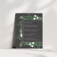 Conçue pour coordonner avec notre collection de mariages de serre, cette carte d'information botanique élégante et saisissante comporte une bordure de vert aquarelle feuillage, de feuilles botaniques et de minuscules fleurs blanches encadrant vos principaux détails mariages, comme les chambres d'hôtel, les informations de bienvenue de la réception, le site Web et plus sur un riche arrière - plan de couleur terre.