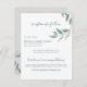 Le feuillage d'aquarelle botanique s'enroule élégamment au coin de cette magnifique carte de boîtier de faire-part de mariage. Les feuilles d'aquarelle dans les tons bleu, gris et vert sauge carte d'information de réception comprennent la ligne de temps des événements, les directions et les hébergements et les informations sur le site Web, avec beaucoup d'espace libre pour le texte supplémentaire.