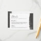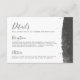 Elégante carte de détails Mariage céleste. Doté d'un mélange de caractères script et de polices serif classiques, ce design a un arrière - plan blanc avec des accents d'aquarelle gris foncé sur le côté et des étoiles dorées. Parfait pour un mariage céleste sous une nuit étoilée, cette carte comprend des détails essentiels sur la réception, l'hébergement, le voyage, la tenue et plus encore. En toute simplicité et élégance, il assure à vos invités une bonne information pour votre soirée magique. Customisez tout le texte avec vos informations et ajustez la couleur de l'arrière - plan si nécessaire. Profitez d'un design magnifique et sophistiqué pour votre soirée spéciale sous les étoiles.