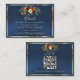 Autumn Floral, QR Code - Blue Enclosure Card features a beautiful autumn floral bouquet on a blue background framed with ribbon, details for more information on the front and QR code on the back. Designed to coordinate with the "Floral & Foil Botanical Wreath" Wedding Collection. To change details, click «Personalize». To move the text or change the text size, font, or color click «Click to customize further»