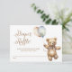 La carte de fermeture à Baby shower à rabat Neutral Teddy Bear présente une adorable aquarelle illustrant un ours en peluche tenant des ballons.