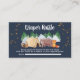 Carte d'enclos en baby shower rustique sucré avec une jolie aquarelle illustrant les animaux des bois avec leur tente campant sous un ciel étoilé bleu foncé dans les montagnes et la forêt et "Déchirer Raffle" et dans un script blanc.