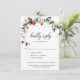 Ce délicat bouquet d'aquarelle aux couleurs traditionnelles de Noël, vert de la forêt, vert d'olive et rouge canneberge sur le blanc éclatant. Tout le texte peut être modifié pour répondre aux besoins de votre événement. Le côté arrière a un arrière - plan vert coordonnant. Coordonnées avec les articles de la collection Mariage de Berry d'hiver.