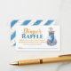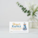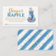Billet de tombola pour Baby shower avec illustration d'un adorable dauphin dans un aquarium avec un peu de poisson. Le dos est habillé de rayures blanches et bleues et d'une douche de parties scintillant dorée.