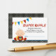 Bons de tombola de baby shower superhéros amusants. Doté d'une bannière à bottes, d'une illustration super bébé et de pois aux couleurs sombres de rouge, noir, bleu et jaune. Quelques graphiques par www.jwillustrations.com