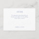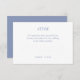 Donnez à cette carte votre touche personnelle. Cette carte de vêtements chic comporte 5 points blancs que vous pouvez remplir à la main, en utilisant l'aquarelle ou tout autre moyen. L'avant présente une police contemporaine en bleu poussiéreux contre un arrière - plan blanc, tandis que l'arrière comprend un monogramme floral blanc contre un arrière - plan bleu poussiéreux. Cet article fait partie d'une suite de mariages qui comprend des invitations et d'autres produits.