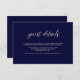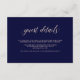 Ces cartes de détails simples et minimes pour les mariages présentent une calligraphie rose vif sur un arrière - plan bleu marine. Vous pouvez utiliser cette option pour inclure les itinéraires routiers, les informations sur l'hébergement ou toute autre information que vous devez connaître à vos invités.